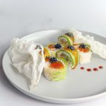 Рис, креветка темпура, салат айсберг, огурец, рисовая бумага, соус кунжутно – горчичный, соус манго – чили