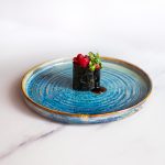 Рис, нори, соус сырный, лосось копченый, черри, соус ДорБлю, соус чимичурри, соус терияки