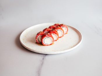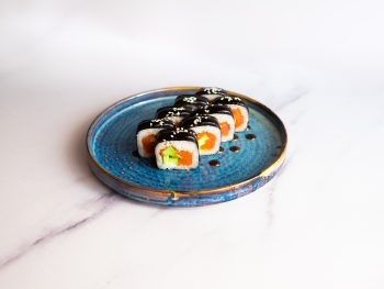 Лосось, лук зеленый, соус спайси, соус итачи, кунжут