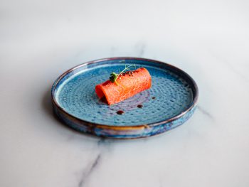 Рис, нори, лосось слабосоленый, авокадо, соус спайси, соус терияки, кунжут