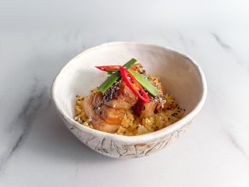 Грудинка свинина, рис, карри, перец чили, лук зеленый, кунжут