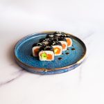 – Ролл Филадельфия – Ролл Филадельфия с медом и лососем гравлакс – Ролл тартар с лососем гравлакс и креветкой Имбирь, васаби, соевый соус