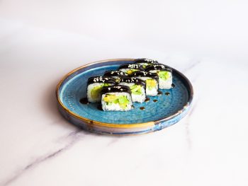 Рис, сыр творожный, креветка, авокадо, соус кунжутный, соус терияки