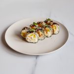 Рис, нори, огурец свежий, авокадо, сурими, соус спайси, икра тобико, соус терияки