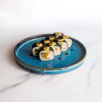 Рис, нори, сыр творожный, чука, такуан, икра тобико, лосось слабосоленый, соус терияки, соус кунжутный
