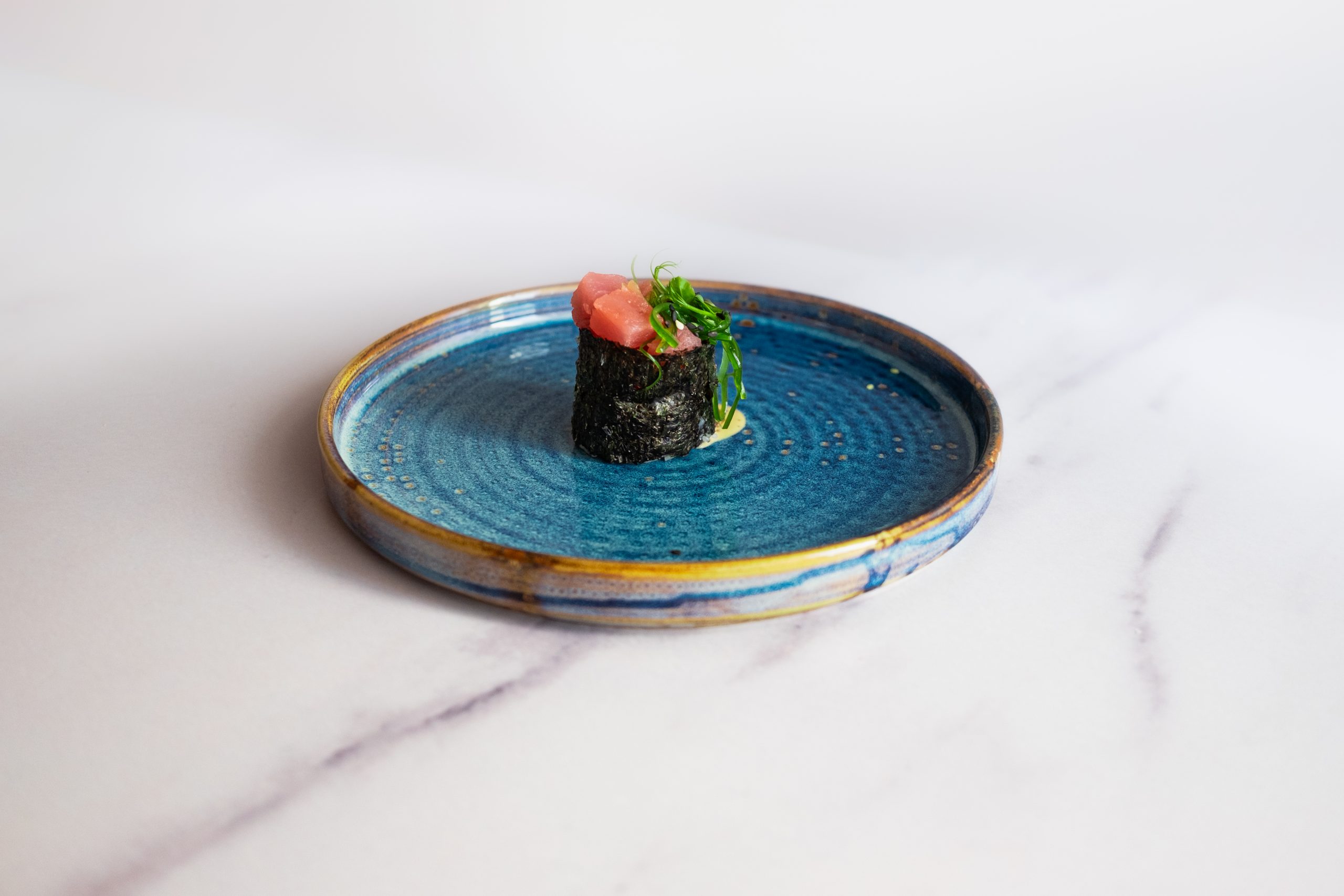 Рис, тунец, чука, соус кунжутный